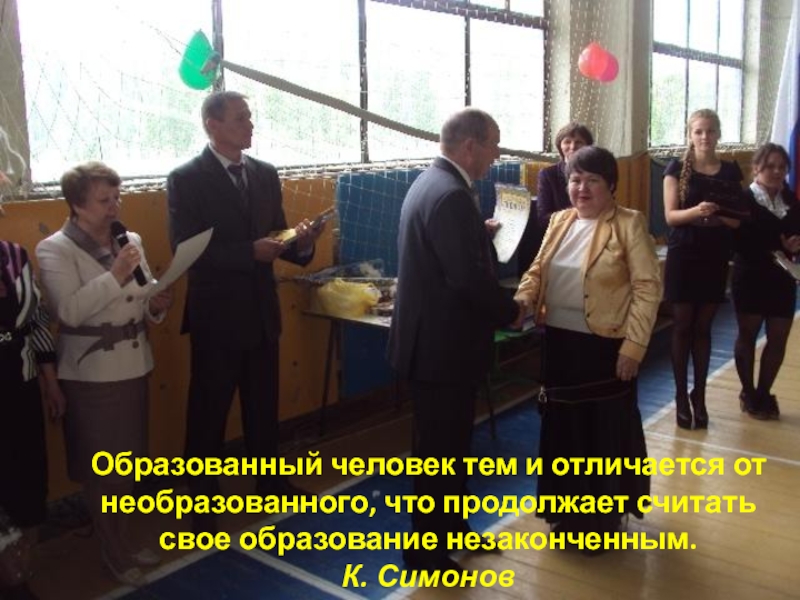 Слайд 11«Учитель должен быть, прежде всего, человеком. Любите не школу, а
