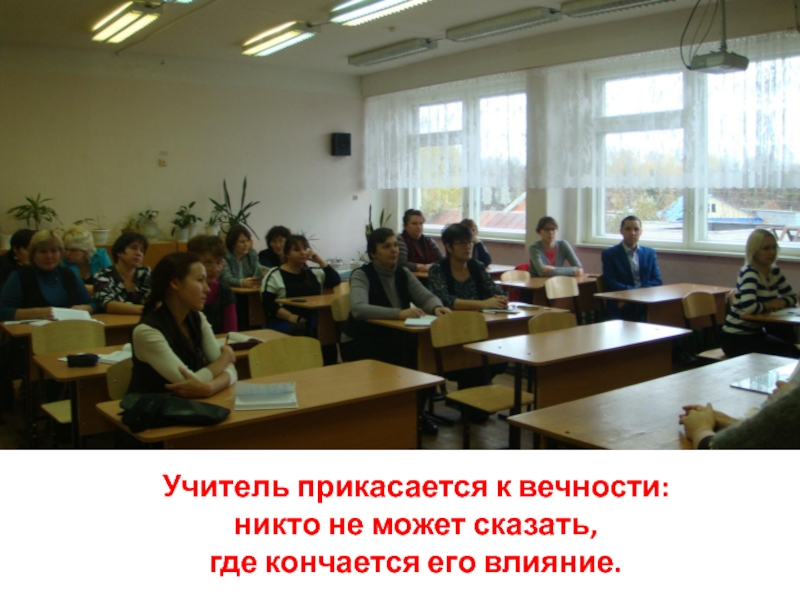 Слайд 44Учитель прикасается к вечности: никто не может сказать, где кончается