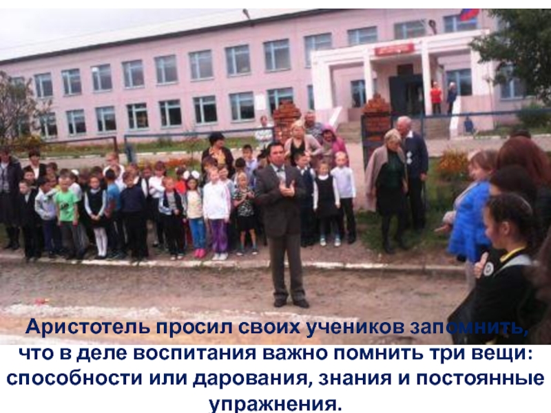 Слайд 7 Аристотель просил своих учеников запомнить, что в деле воспитания важно