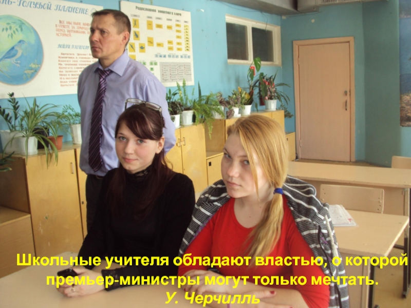 Слайд 40Школьные учителя обладают властью, о которой премьер-министры могут только мечтать.