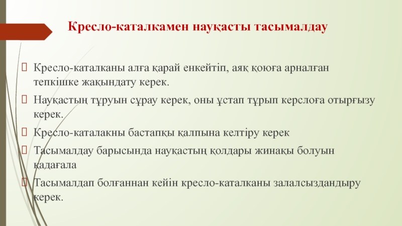 Кресло-каталкамен науқасты тасымалдау