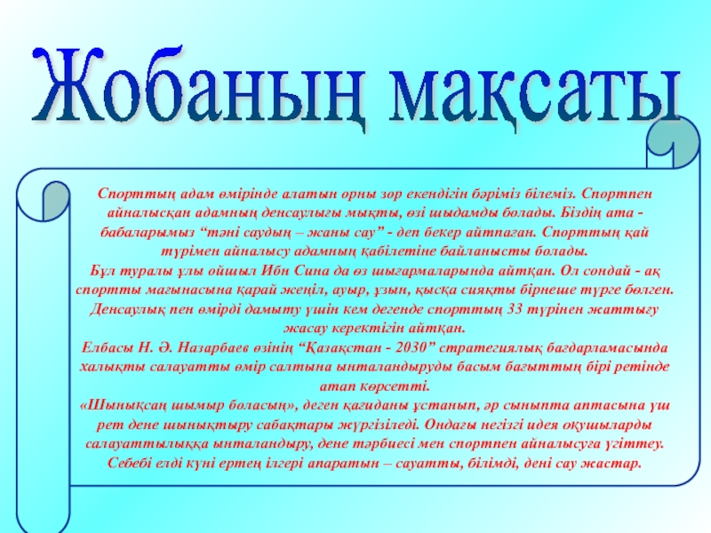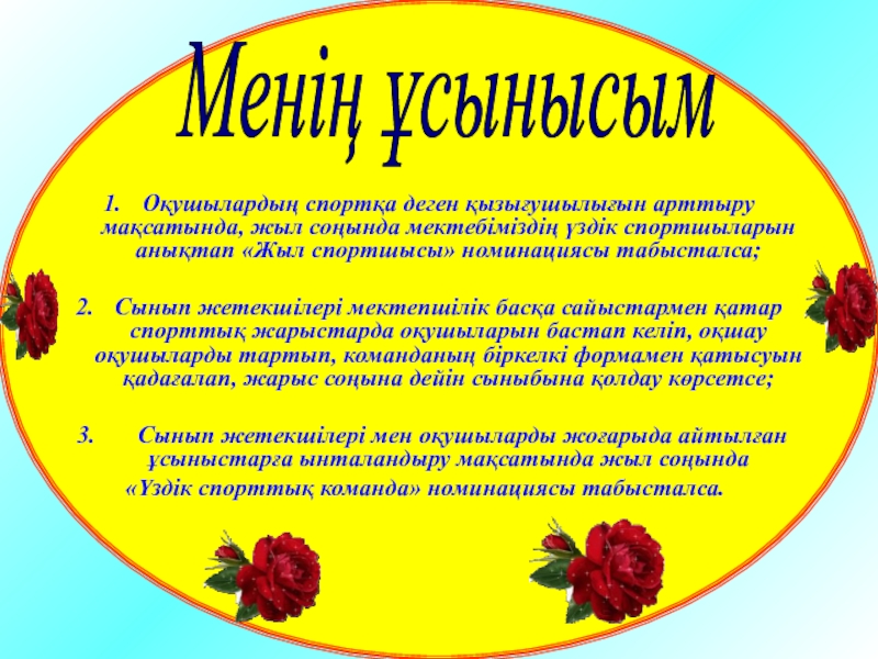 Оқушылардың спортқа деген қызығушылығын арттыру.