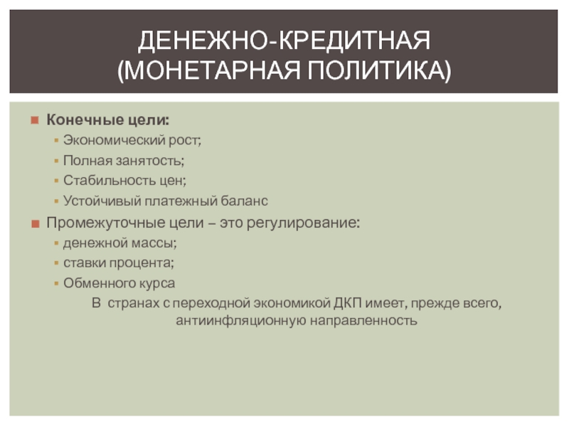 Цель введения - переход к инфляционному таргетированию