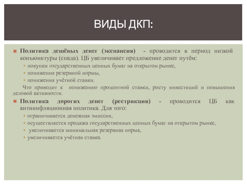 Изменение нормы обязательных резервов - это изменение объёма активов, которые банки должны хранить в резервах ЦБ. Этот метод обычно применяют в долгосрочном периоде.