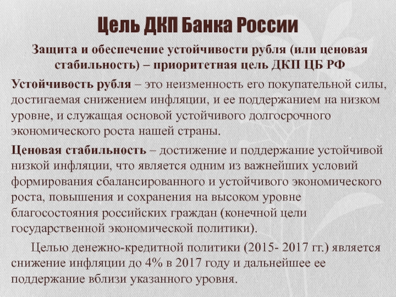 ценовая стабильность) – приоритетная цель ДКП ЦБ РФ
