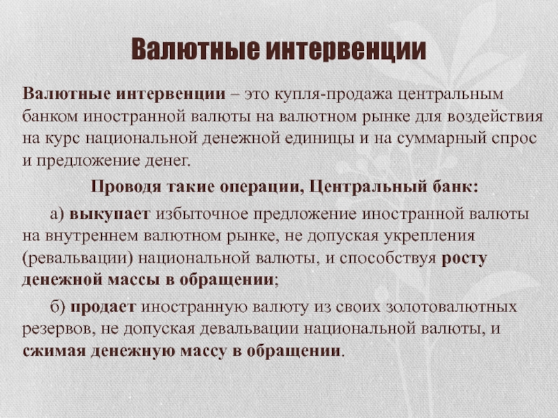 Валютные интервенции – это купля-продажа центральным банком иностранной валюты
