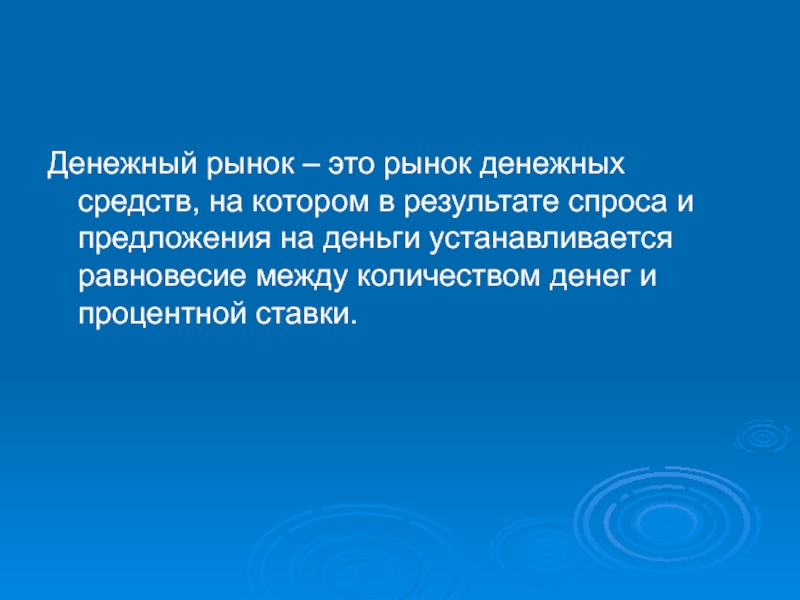 Слайд 4Денежный рынок – это рынок денежных средств, на котором в