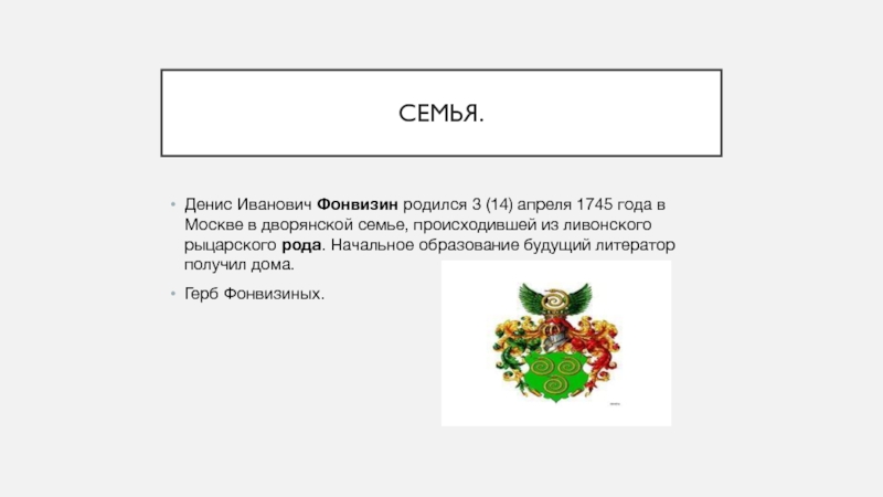 дворянской семье, происходившей из ливонского рыцарского рода. Начальное образование будущий литератор