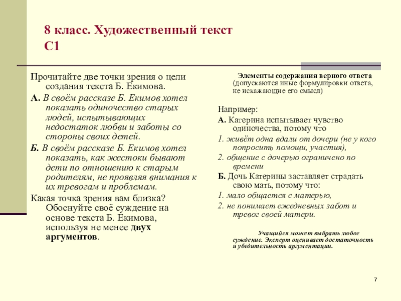 Учащийся может выбрать любое суждение. Эксперт оценивает достаточность и убедительность аргументации.