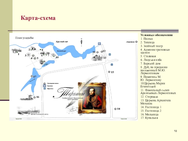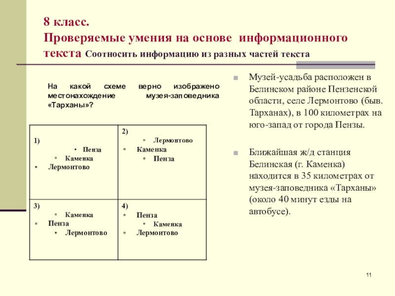 На какой схеме верно изображено местонахождение музея-заповедника «Тарханы»?