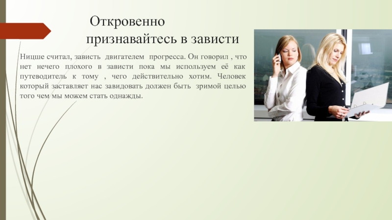 используем её как путеводитель к тому , чего действительно хотим. Человек который заставляет нас завидовать должен быть зримой целью того чем мы можем стать однажды.
