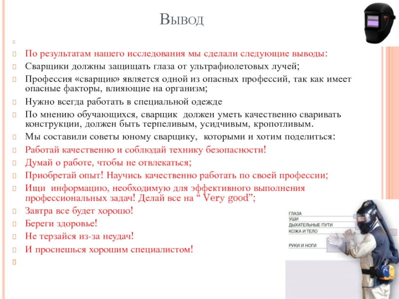 ультрафиолетовых лучей в электросварке” Профессия: 15.01.15Сварщик (электросварочные и газосварочные работы)
