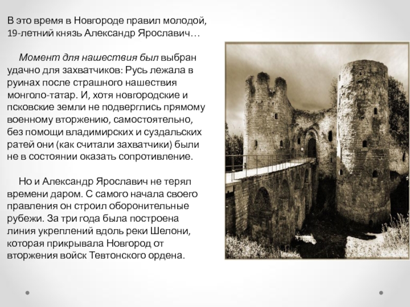 Слайд 6В это время в Новгороде правил молодой, 19-летний князь Александр