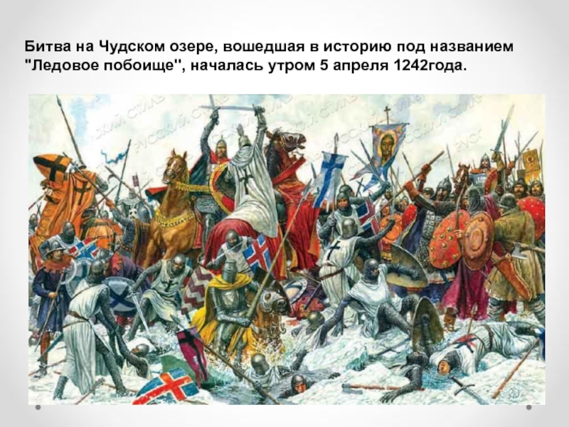 немецкими рыцарями на Чудском озере. Эту уникальную страницу истории все мы знаем как Ледовое побоище, произошедшее в 1242 году.