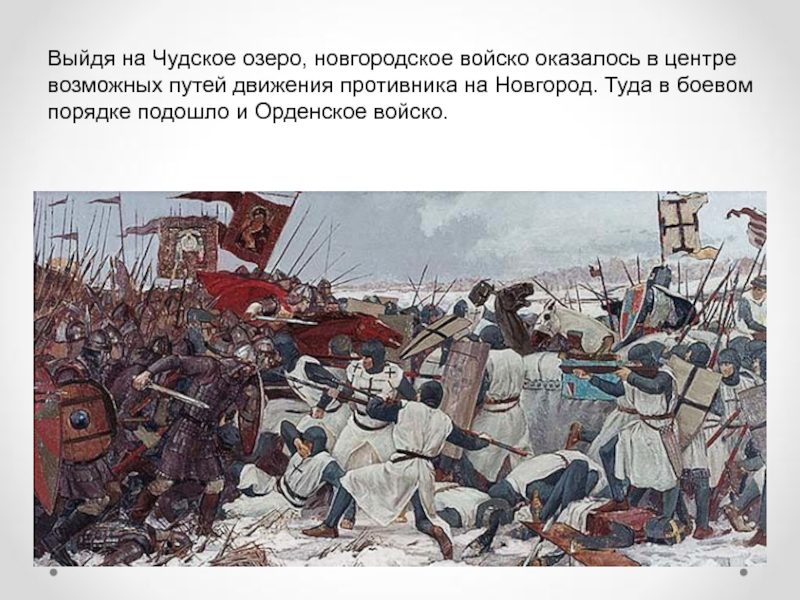 Слайд 18Выйдя на Чудское озеро, новгородское войско оказалось в центре возможных