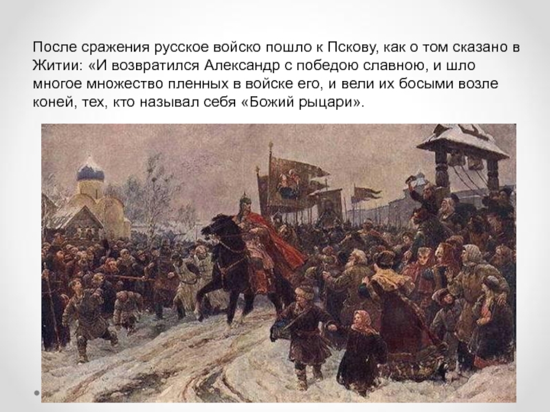 Слайд 25После сражения русское войско пошло к Пскову, как о том
