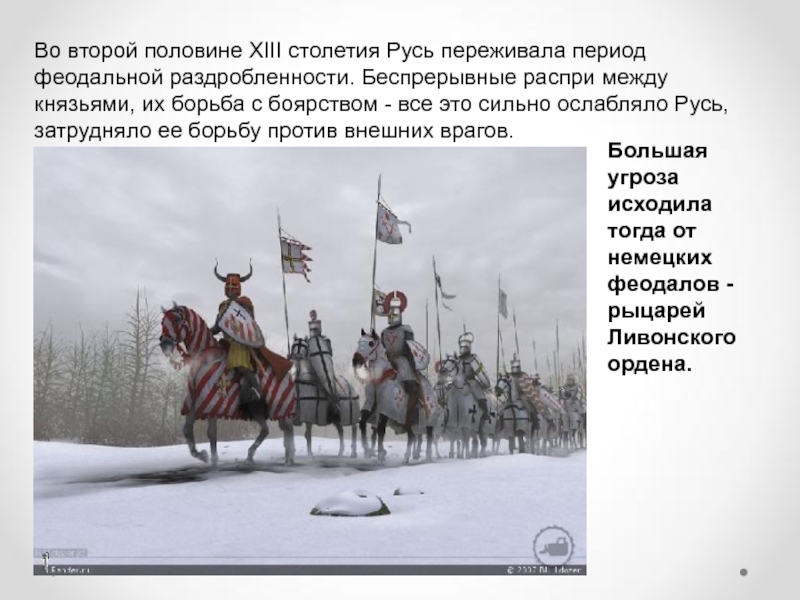 Большая угроза исходила тогда от немецких феодалов - рыцарей Ливонского ордена.