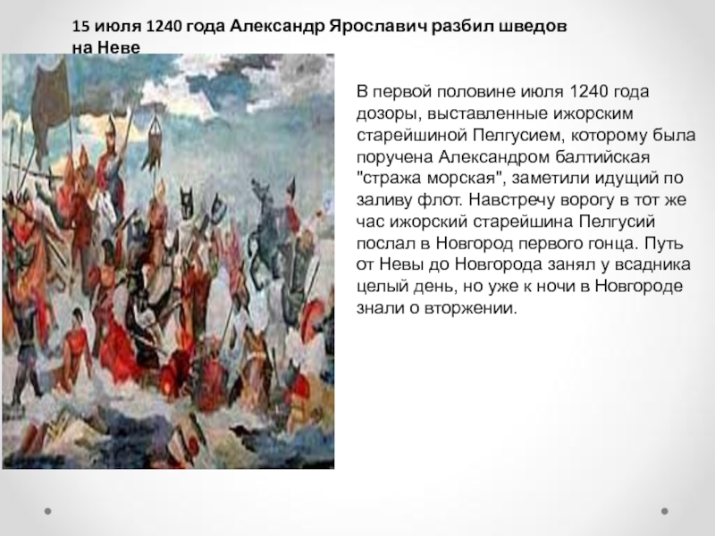 Слайд 7В первой половине июля 1240 года дозоры, выставленные ижорским старейшиной