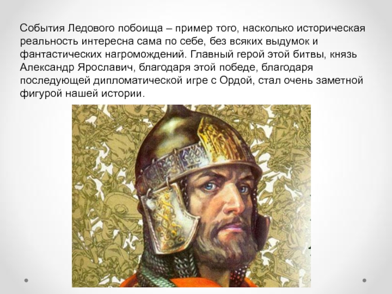 Слайд 13События Ледового побоища – пример того, насколько историческая реальность интересна