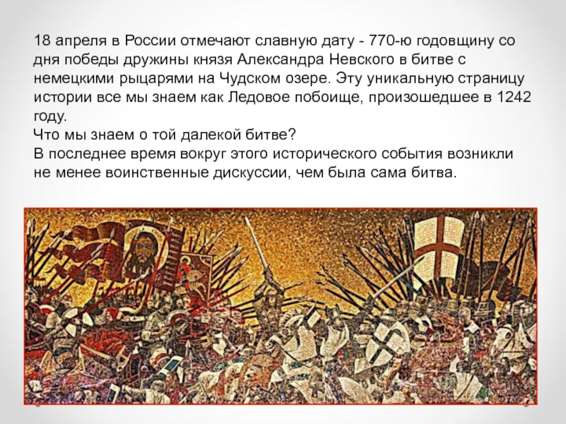 Слайд 1218 апреля в России отмечают славную дату - 770-ю годовщину