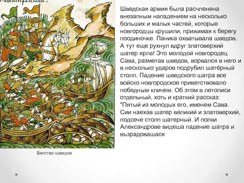 малых частей, которые новгородцы крушили, прижимая к берегу поодиночке. Паника