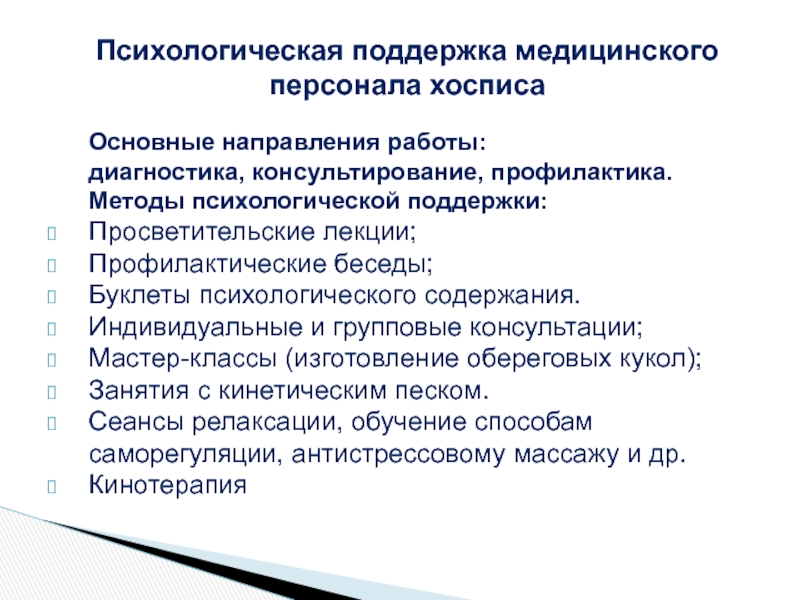 Основные направления работы медицинского психолога в ГКУЗ