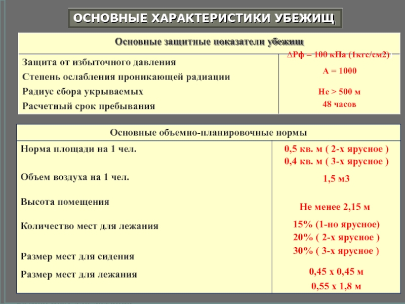 ОСНОВНЫЕ ХАРАКТЕРИСТИКИ УБЕЖИЩ
