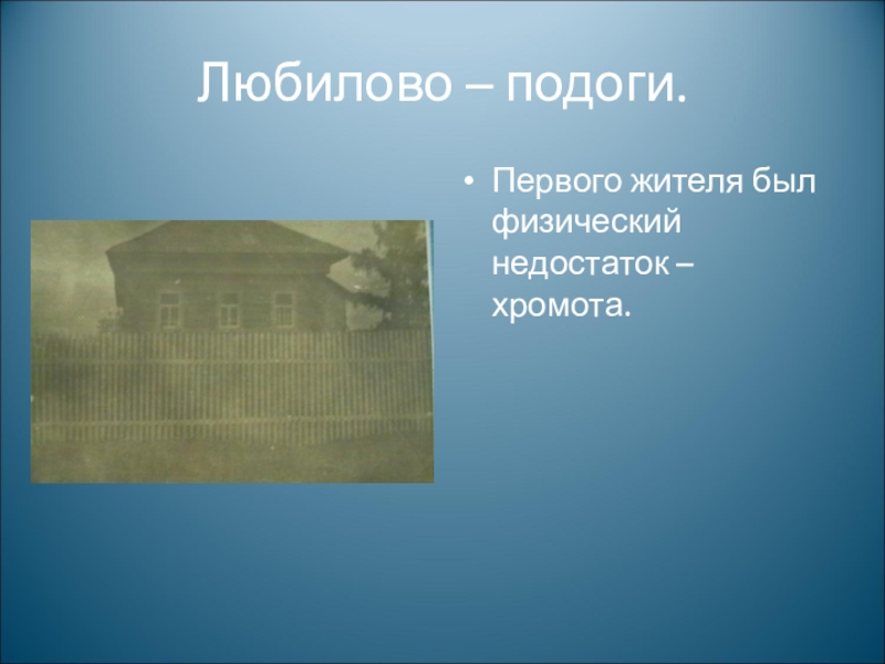 Любилово – подоги.Первого жителя был физический недостаток – хромота.