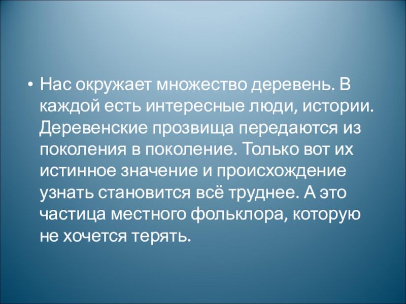 Нас окружает множество деревень. В каждой есть интересные люди, истории. Деревенские прозвища передаются из поколения в поколение.