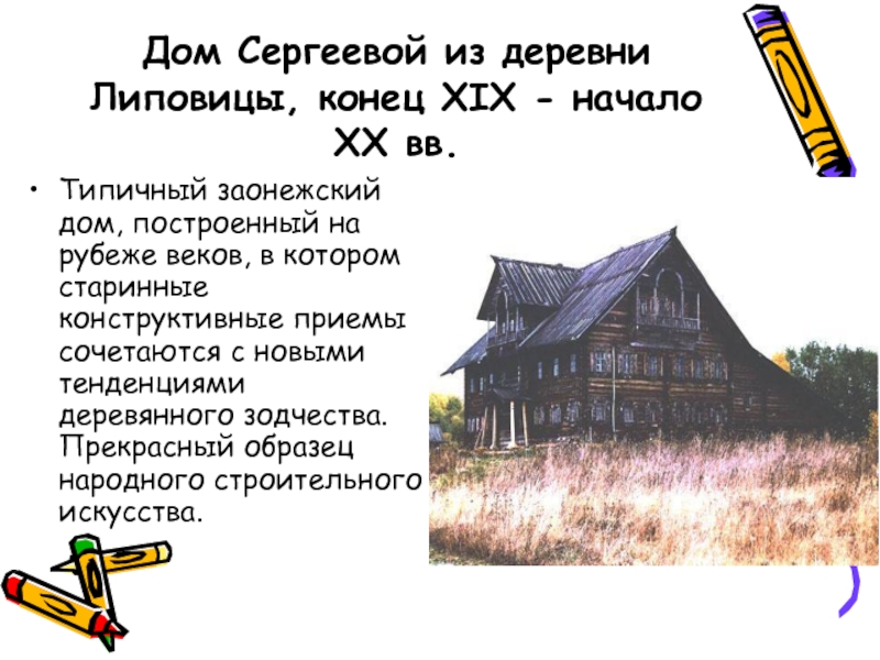 Слайд 8Дом Сергеевой из деревни Липовицы, конец XIX - начало XX