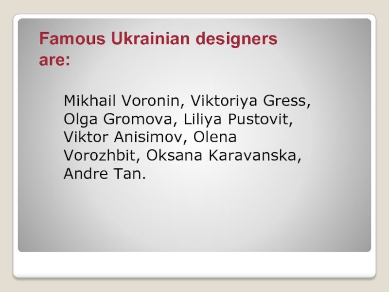 of the coin.The fashion is made by designers. And now I will tell you about designers in Ukraine and abroad.