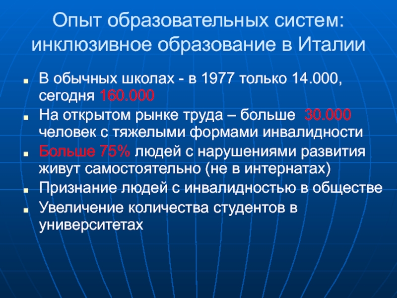 Опыт образовательных систем: инклюзивное образование в Италии