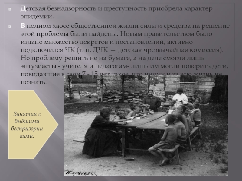 Занятия с бывшими беспризорниками.