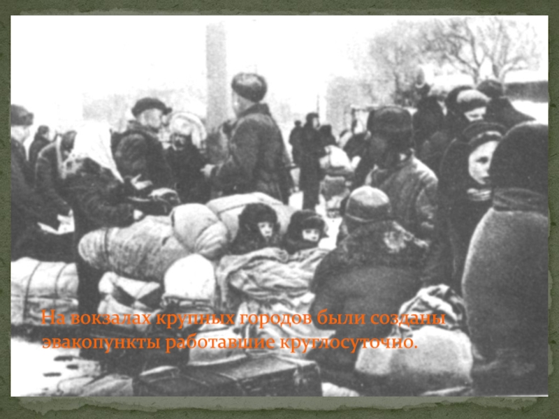 Слайд 6 На вокзалах крупных городов были созданы эвакопункты работавшие