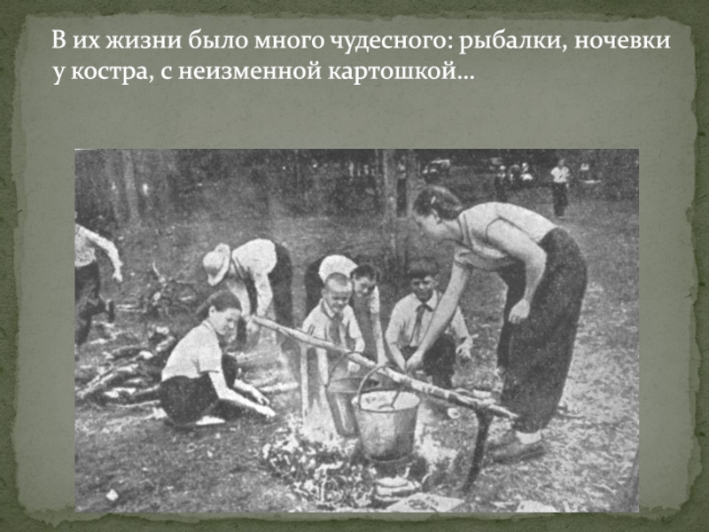 Слайд 2 В их жизни было много чудесного: рыбалки, ночевки