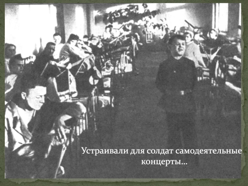 Слайд 14Устраивали для солдат самодеятельные концерты…