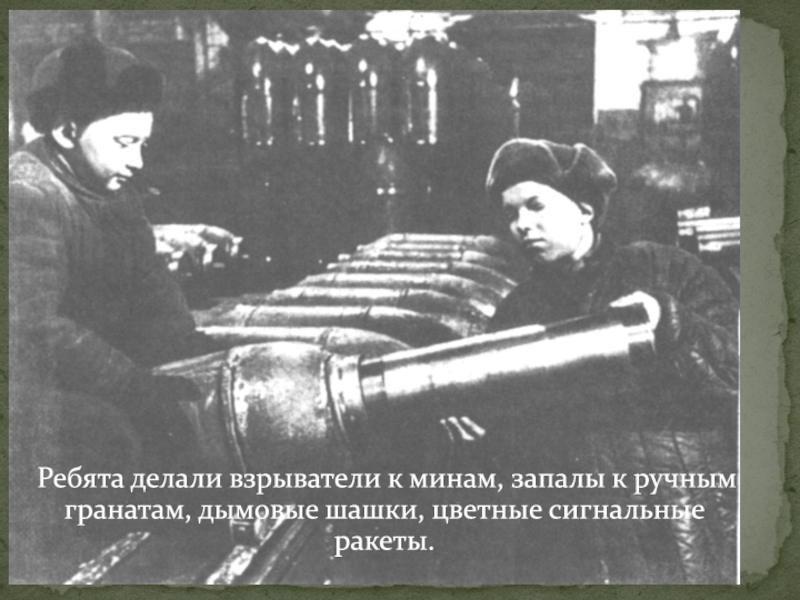 Слайд 10 Ребята делали взрыватели к минам, запалы к ручным