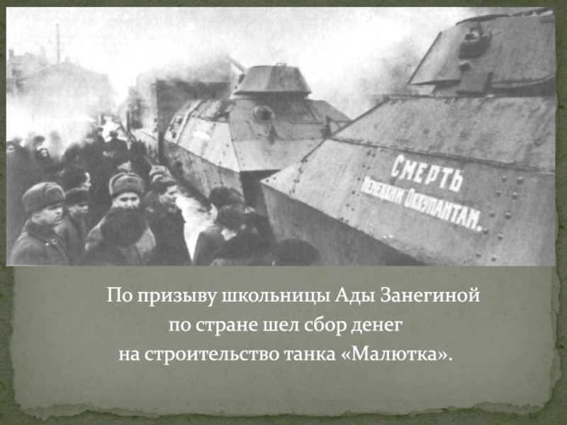 По призыву школьницы Ады Занегиной по стране шел сбор денег на строительство танка «Малютка».