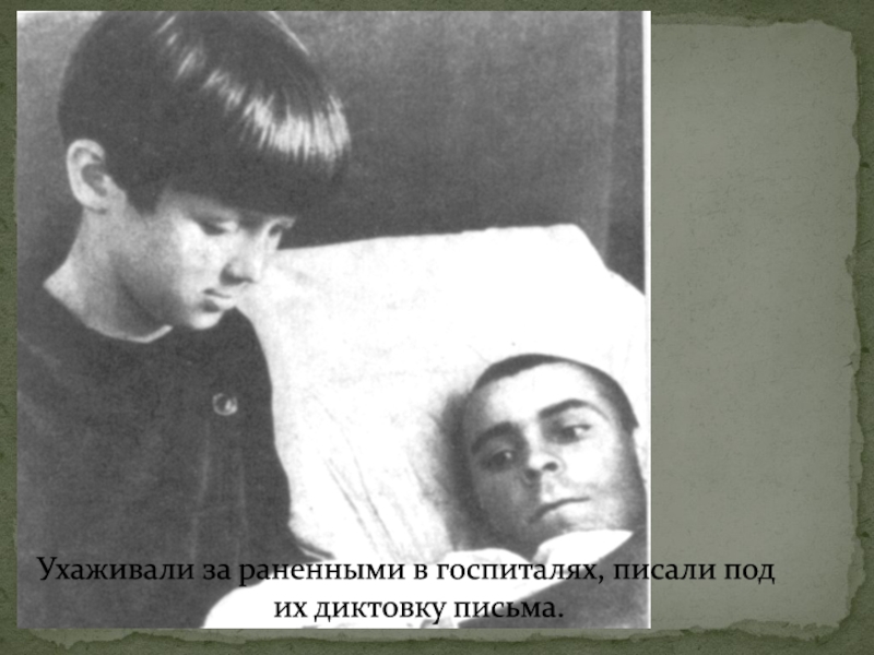 Слайд 8Ухаживали за раненными в госпиталях, писали под их диктовку письма.