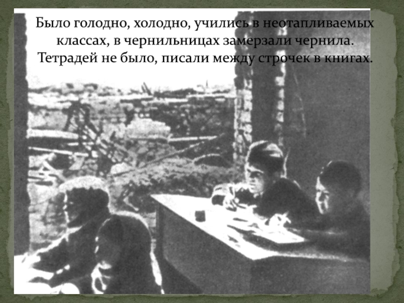 Слайд 12 Было голодно, холодно, учились в неотапливаемых классах, в
