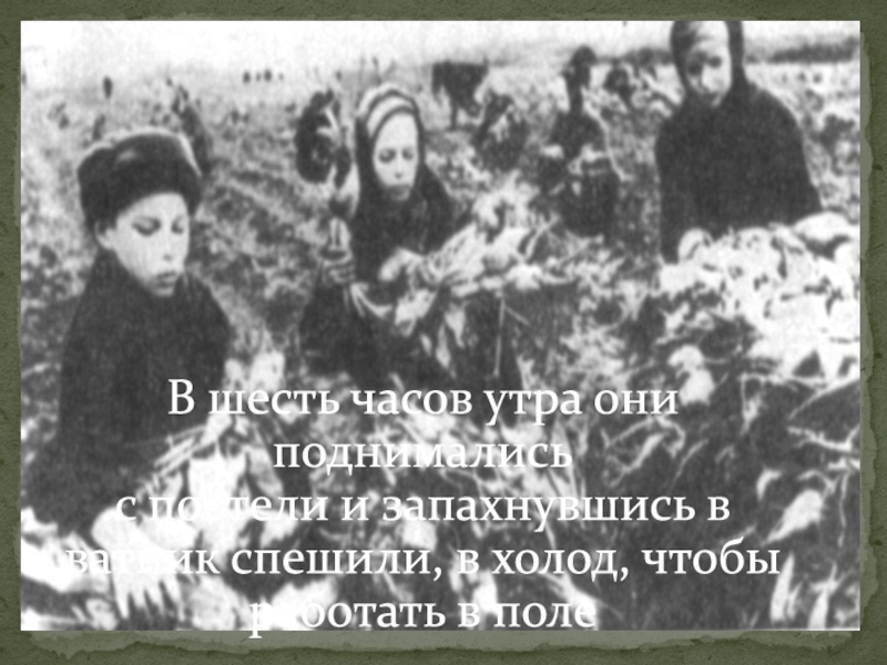 В шесть часов утра они поднимались с постели и запахнувшись в ватник спешили, в холод, чтобы работать