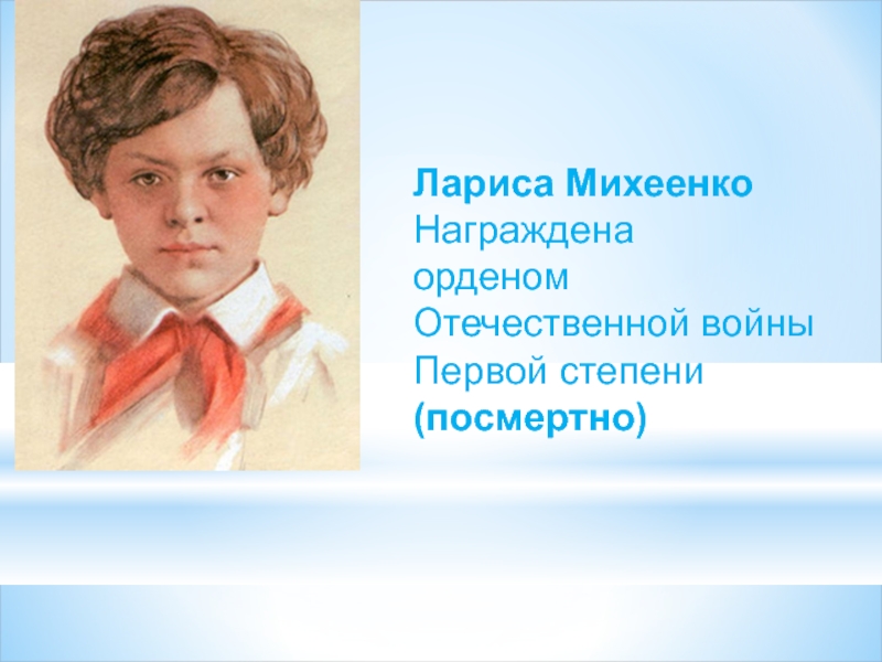 Лариса МихеенкоНагражденаорденомОтечественной войны Первой степени (посмертно)