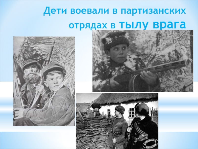 Слайд 19Дети воевали в партизанских отрядах в тылу врага