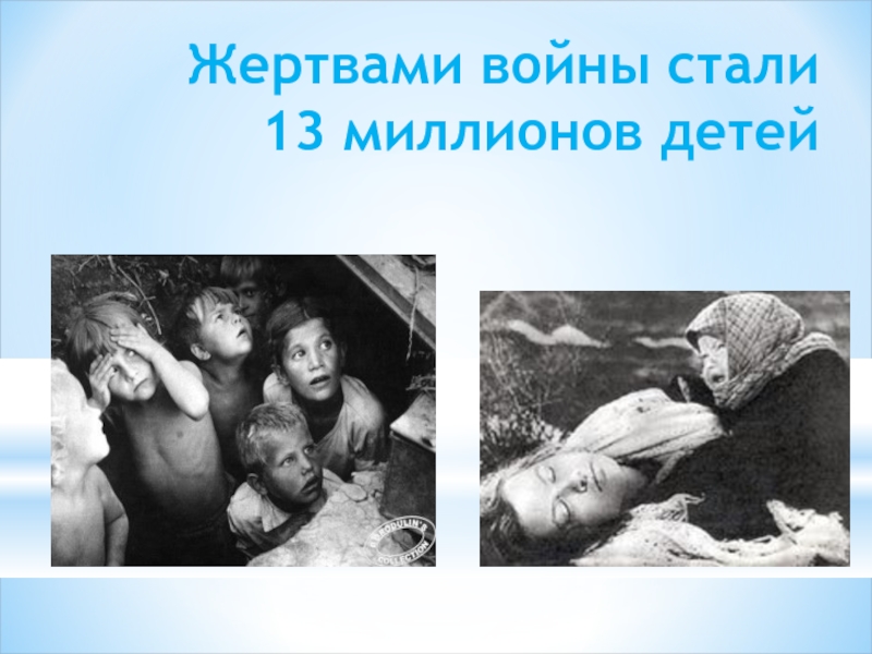 Слайд 3Жертвами войны стали 13 миллионов детей