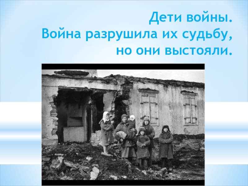 Слайд 29Дети войны. Война разрушила их судьбу, но они выстояли.