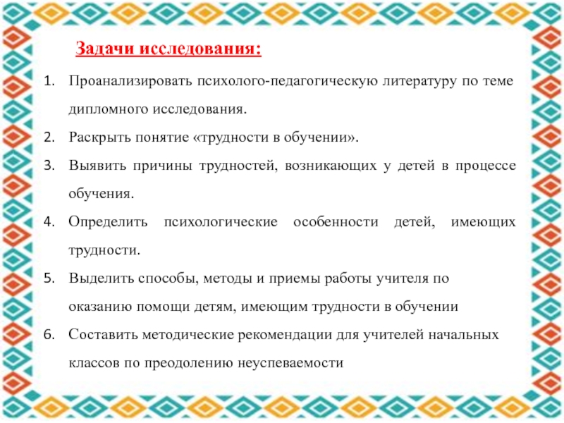 Выявить причины трудностей, возникающих у детей в процессе обучения.