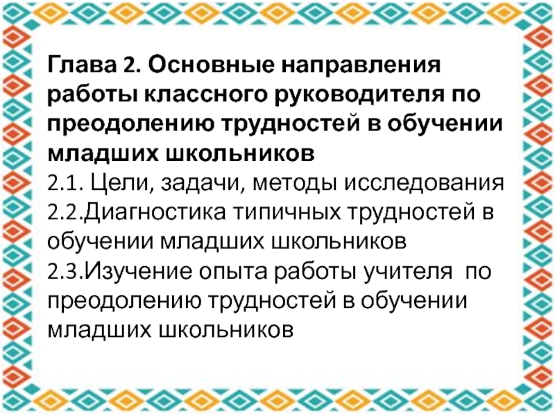 Слайд 8Глава 2. Основные направления работы классного руководителя по преодолению трудностей