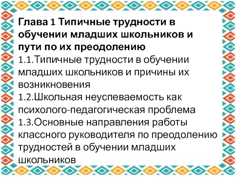 Слайд 7Глава 1 Типичные трудности в обучении младших школьников и пути