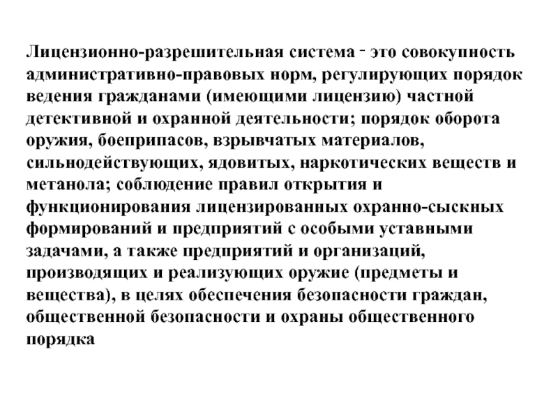 Слайд 3Лицензионно-разрешительная система ‑ это совокупность административно-правовых норм, регулирующих порядок ведения