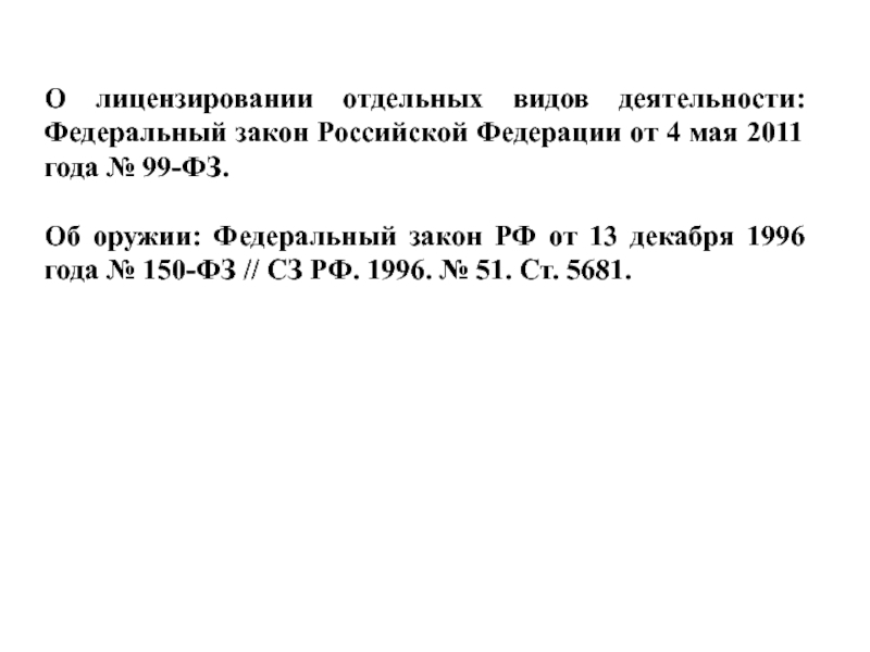 Слайд 2О лицензировании отдельных видов деятельности: Федеральный закон Российской Федерации от